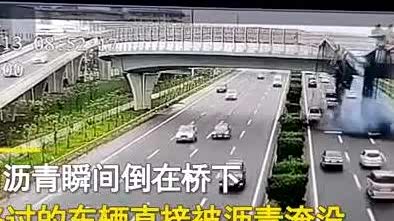 近日、沪昆高速公路松江东出口引桥上,一辆装有沥青的货车发生侧翻并撞损护栏,车上装载的部分沥青,掉落至沪昆高速公路主线干道,导致途经的4辆轿车受损,2人受伤。视频异常,无法播放这辆货...