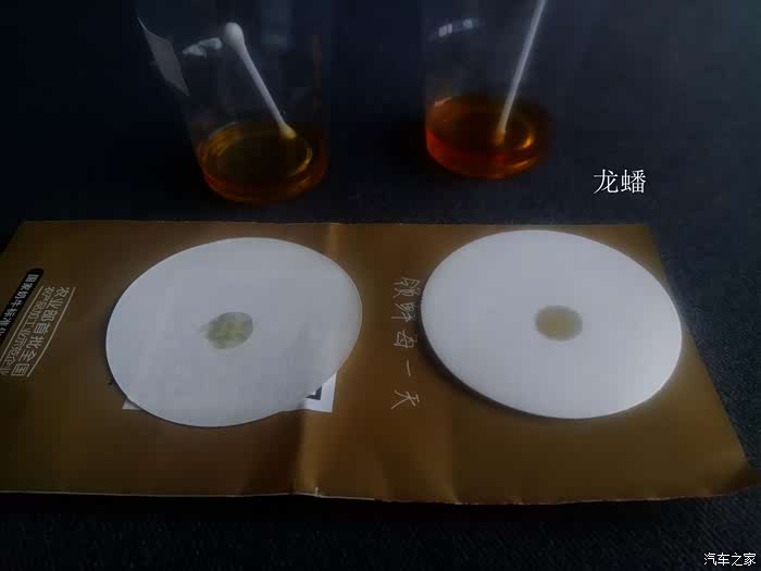 这是初阶测试:滴落及试纸测试,都属于物理特性测试,滴落很快(密度小?),扩散环很满意(2者无区别)。但是还不能代表机油的品质。