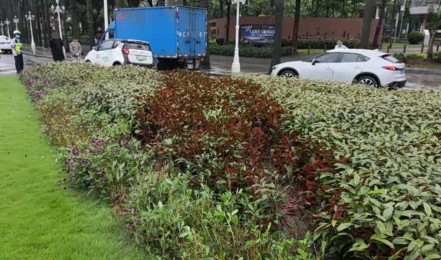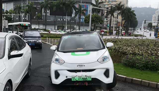 梁警官接到报警后迅速赶到现场,只见车牌号为粤CD0××09的共享汽车停在迎宾南路交粤海路路口右转渠化车道上,左后轮还卡在花坛上。