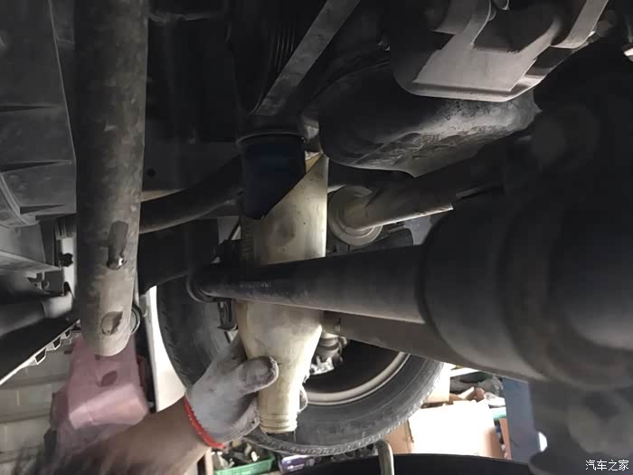 新的换上,这个不像我以前自己换五菱之光时候那么仔细,我是先把机油滤里倒满油再上……