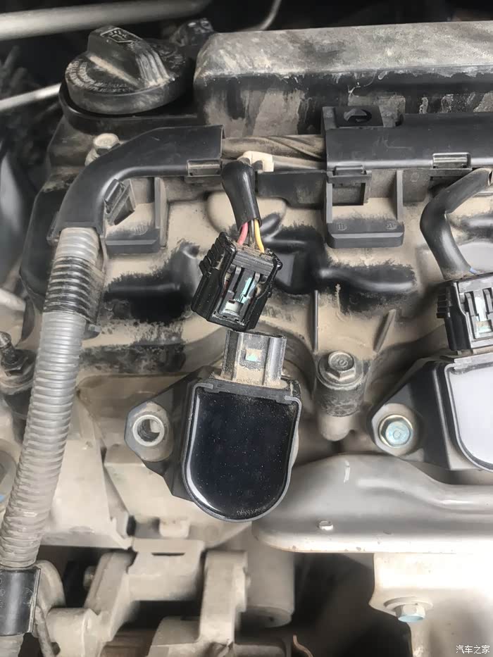 2、点火线圈插头,有个塑料扣卡,螺丝刀稍微别一下,再拽即可