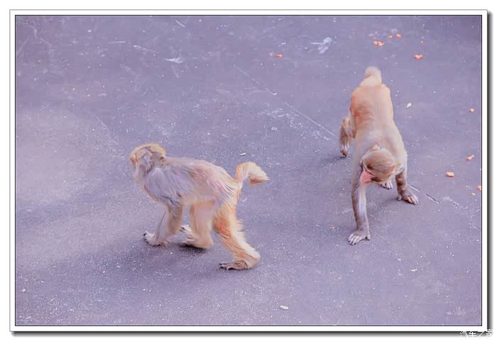 小猴子也是很滑稽,争抢食物,谁也不让谁