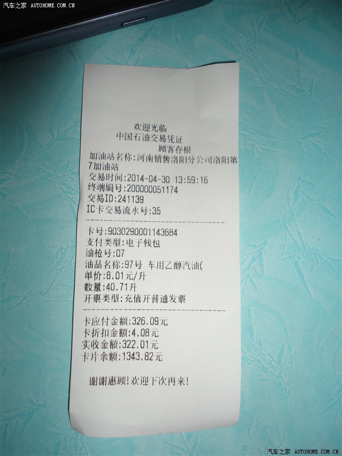 加油量40.71升,应付326.09元。