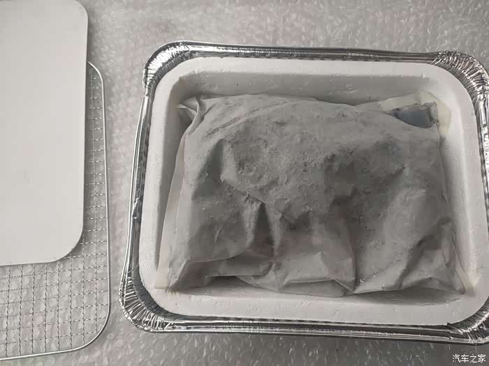 又一层缓震层,看上面就能知道在物流过程当中还是有炭碎掉落出来。这层缓震也能有效的保护下面的锡箔盒不被大块的炭块冲击变形。