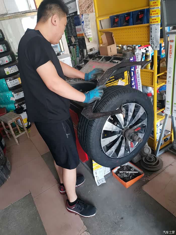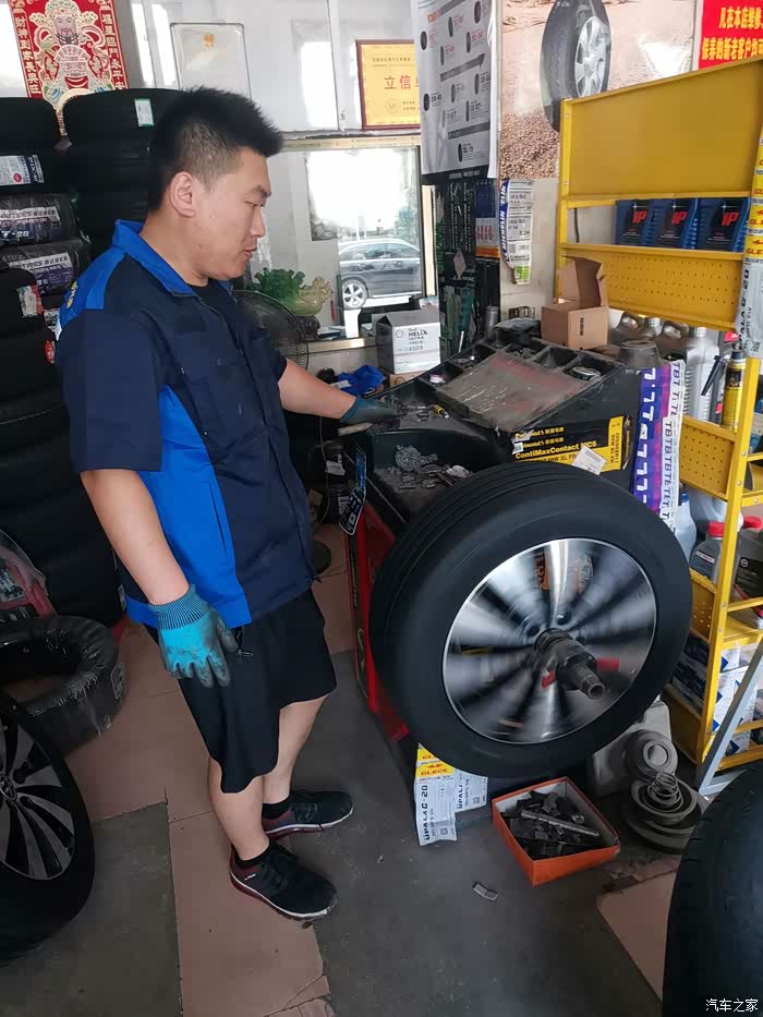 今天是端午小长假第二天,按照昨天与店长约定的时间准时到达轮胎安装门店。店长亲自接待,亲自动手,安装千斤顶,从车上拆下轮子,放气卸旧轮胎,装新轮胎,动平衡,装回车上,一系列流程动作,店长轻车熟路,不到一个小时就全部搞定了。回家的路上,我特意对不同的车速,不同的路况用心感受与原车胎的噪音变化与路面反馈,以及刹车制动效果的不同。目前来看,胎噪比原车锦湖略有降低,后续胎毛磨损后可能还会降低。快到家时,胎压监测竟然报警了,复位后未再报警,不知是何原因。后续有机会再上高速体验一下新轮胎在噪音、舒适性、操控、抓地力、紧急制动等驾驶性能的变化。由于目前是新轮胎磨合阶段,暂时不适合激烈驾驶,后续多跑一点里程后,再来与大家分享这款固特异逸乘轮胎的使用体验。