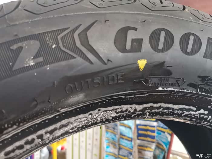待装的固特异逸乘轮胎,胎毛粗壮的很。