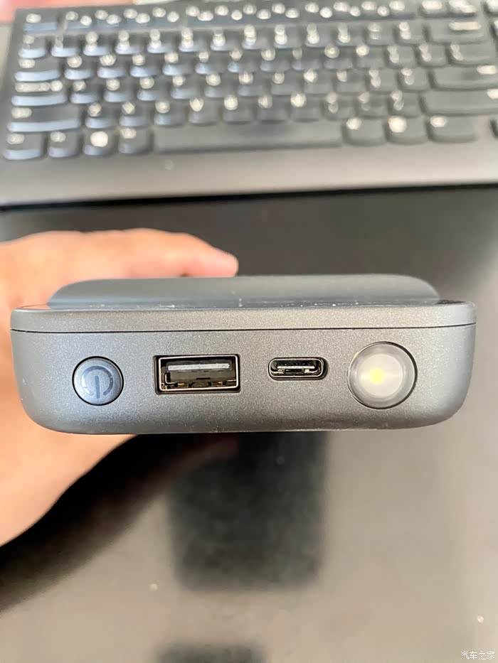 左边电源键、USB输出、TYPE C输入、LED照明闪烁灯。