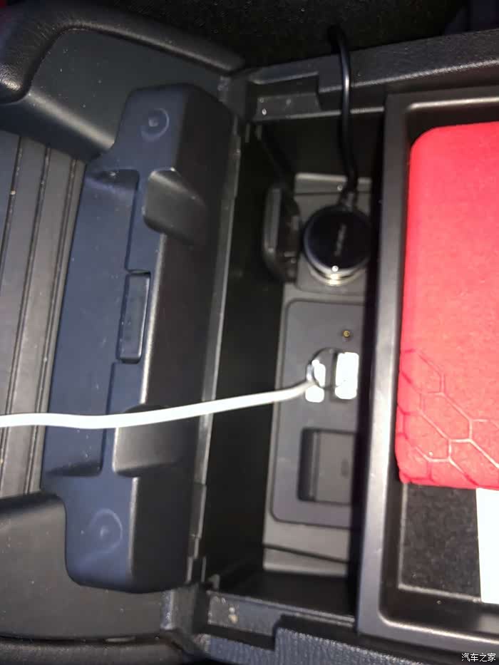 插上扶手箱里的点烟器
