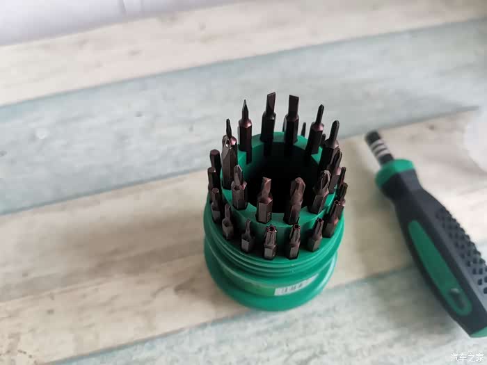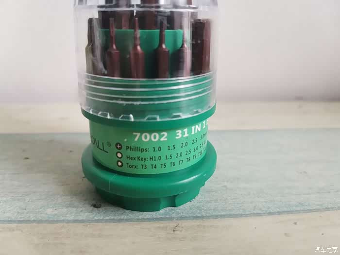数了一下,一共是30个螺丝刀头,加上手柄,一共是31件,确实是31合一
