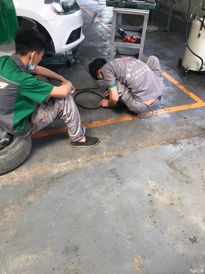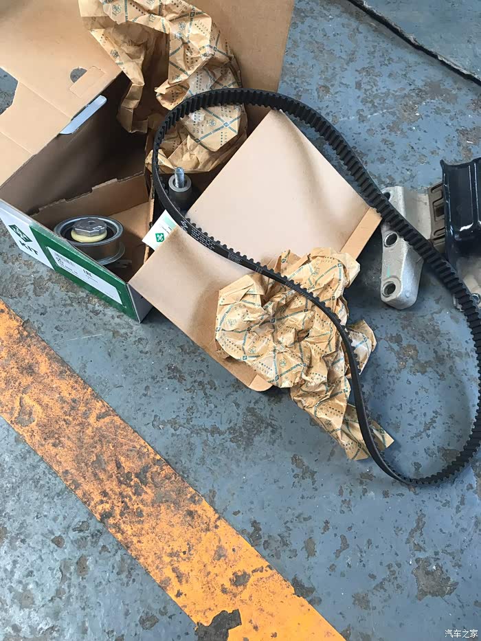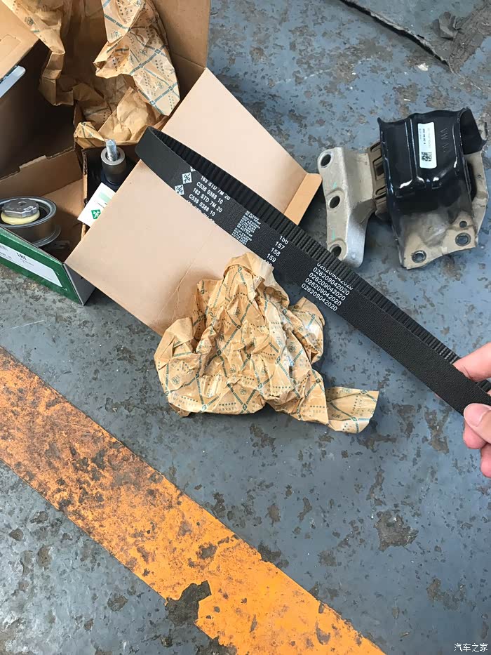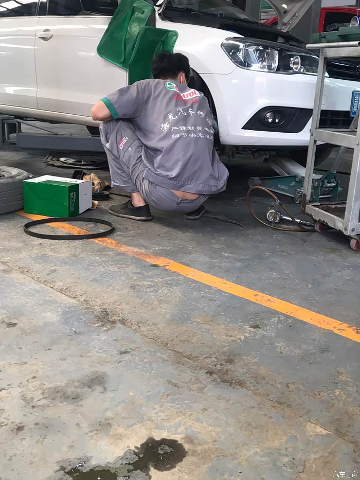 104741㎞更换正式皮带发电机皮带张紧轮,费用正式套装原厂件270元发电机皮带95元工时费270共计:635元。换了三个多小时