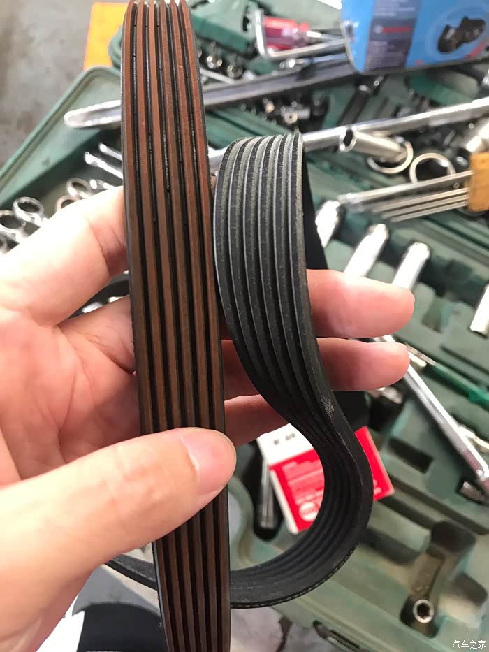 发电机皮带新旧对比,原车的没有任何问题,其实不换也可以