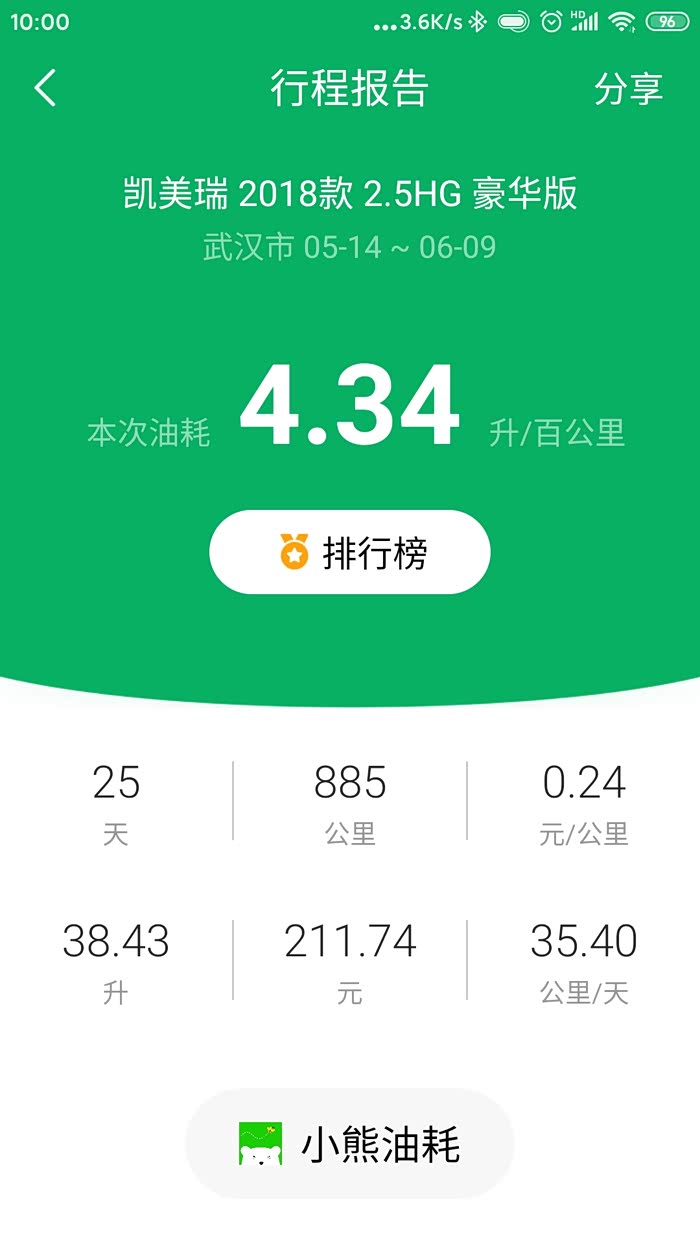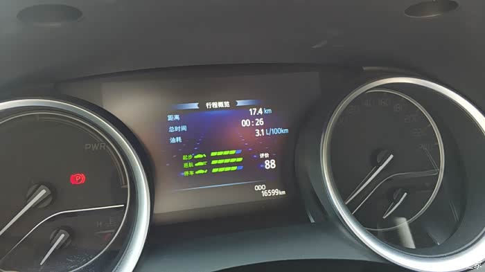 想了下跟这段时间的气温有很大的关系,再就是这一段跑的路都是比较顺畅的,基本上出门2km,上高架,下高架1km到2km到达。途中很少刹车,偶尔有红灯,还有就是单次里程比较长。更好点的成绩基本上都是热车状态下跑出来的,就是发动机还是热的,再次启动,跑个一二十公里这样的距离和路况。整个这一箱油的行驶状况都差不多是这样。对了,忘了一句,是环保模式下的,绝不佛性,遇到欺负人的车一样一脚地板油超过去再说,只不过下坡就收油而已,下高架的时候看着电就差不多充到八格了,油车下坡也收油啊。