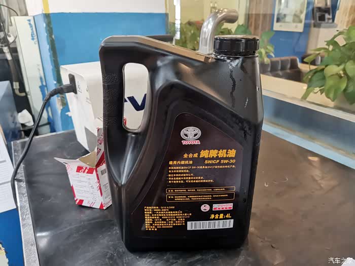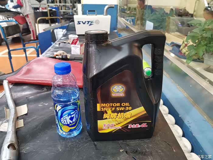 这是要给我换的新机油,后来发现不是新开封的小桶,师傅解释4S店都是大桶购买机油,然后分装给每台来保养的车,这样能节省些成本。