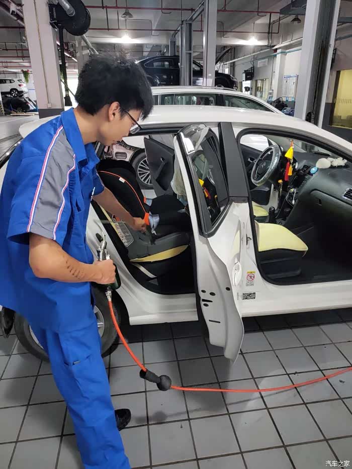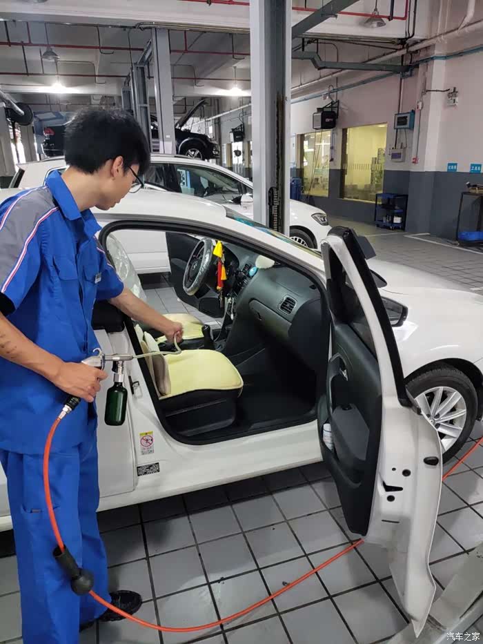 师傅把原厂消毒液注入喷枪中,开始进行消杀,原厂消毒液不会对车内的内饰有腐蚀作用,师傅后备箱、后座和驾驶室一个都不放过,通过消毒,可以把车内空间和管道存在的病毒消杀,还能有效抑制细菌,为我们车友的生活和健康保驾护航。