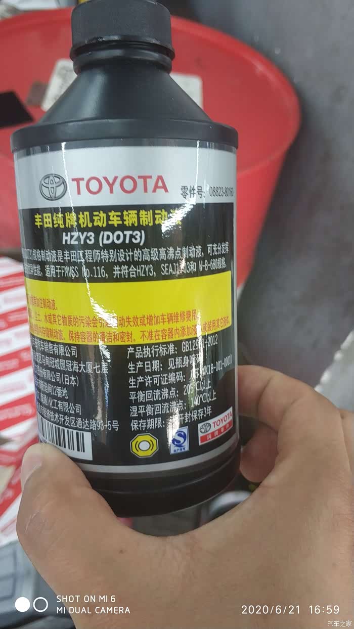 加入DOT3新刹车油,一共用了两瓶,最后看液位高于上限,还抽出来一些。