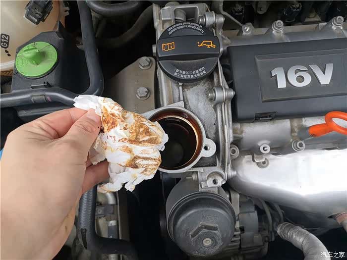 里面也是油污较重。实际这个油污情况和使用的机油有直接关系,机油好就寿命更长。