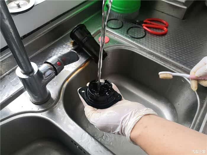 下部分的分离器一体式的,不能拆解,只能倒进去进行浸泡。