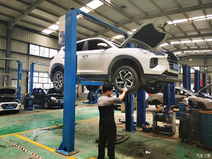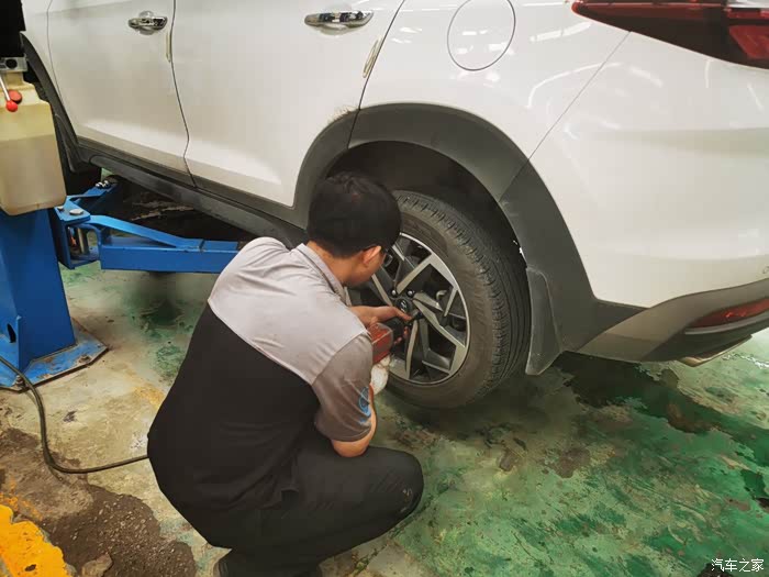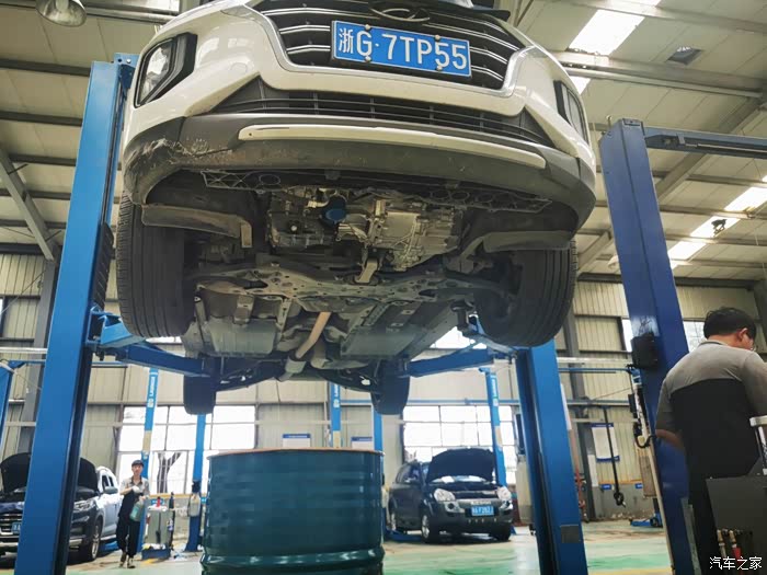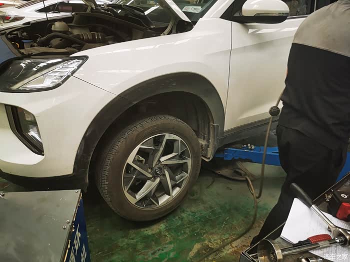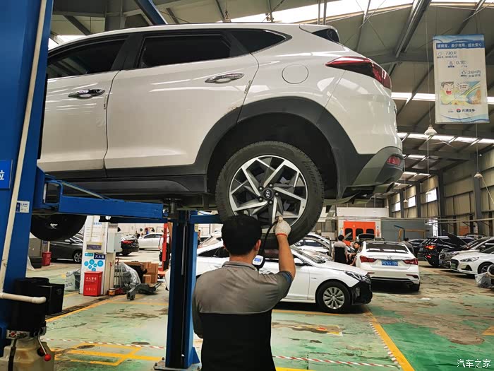 检查完车子之后,售后接待的人就带我去了工位,确定了一下今天的项目,一个基本保养,因为已经4万公里了,就做了一个四轮刹车保养,店里正好有活动,还送了一个空调的检查。