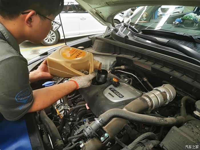 首先添加机油系统保护剂,具体全面加啥我忘记了 当时还特地问了这是什么东西,维修人员跟我说是保护剂。