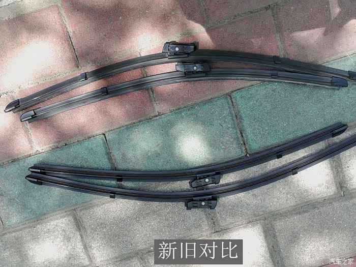 这是安装前与安装后的雨刮器对比,效果还是很明显的。
