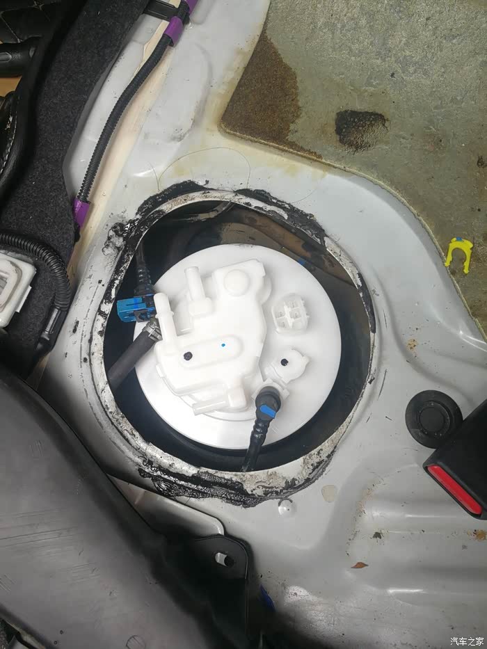 后排座椅很容易就拆除下来了,左后边就是油箱滤芯位置。