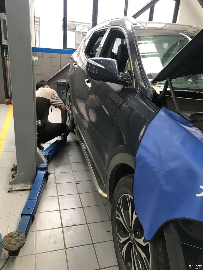 到了4S店,很快就有服务人员上前进行了接待,这家店是老店新址,整体环境很好,又恰好碰到搞活动,还好进行了预约,没有排队的烦恼。了解好项目之后,车子也开进了车间,车间很大。车间温度也挺高的,这帮小伙子挺不容易的。我今天也一时兴起,看着“它”做SPA。
