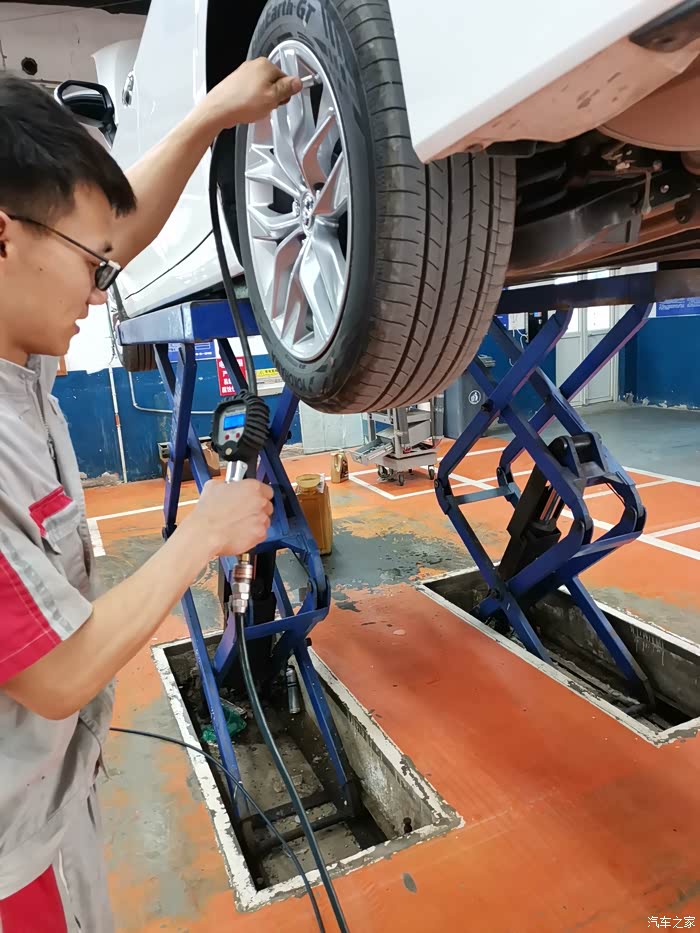 师傅在给大龙测胎压