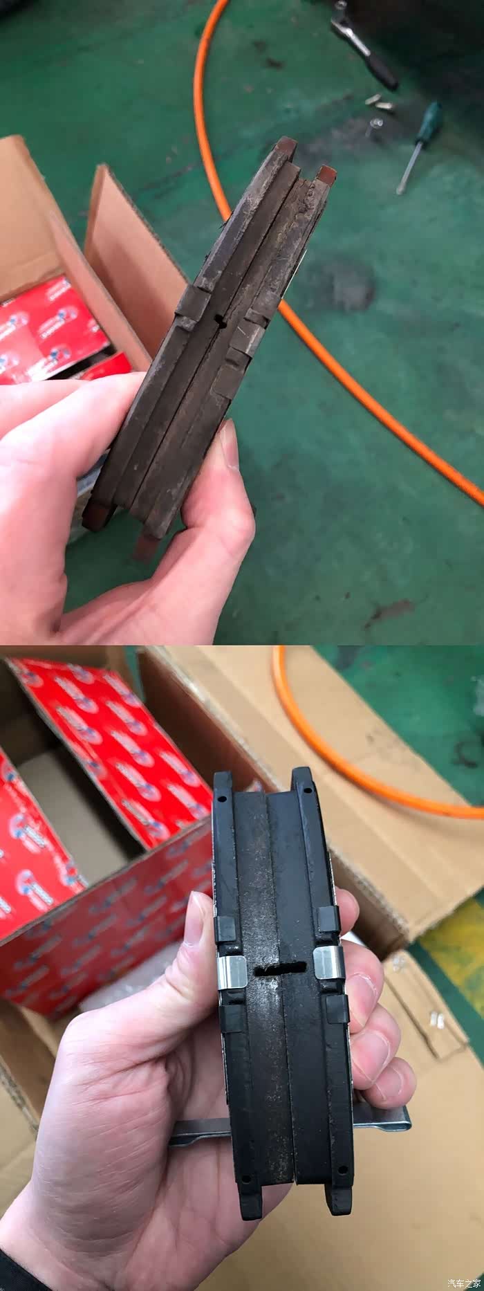 这张是新旧两个刹车片厚度的对比图,旧的也是菲罗多刹车片