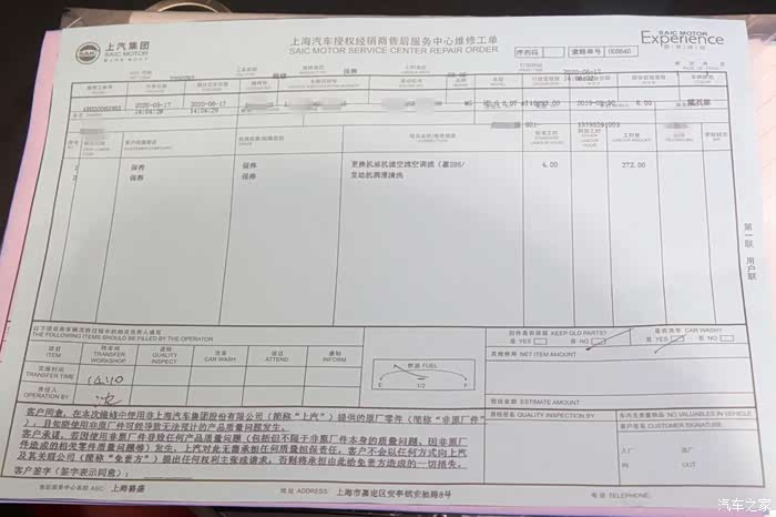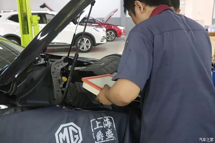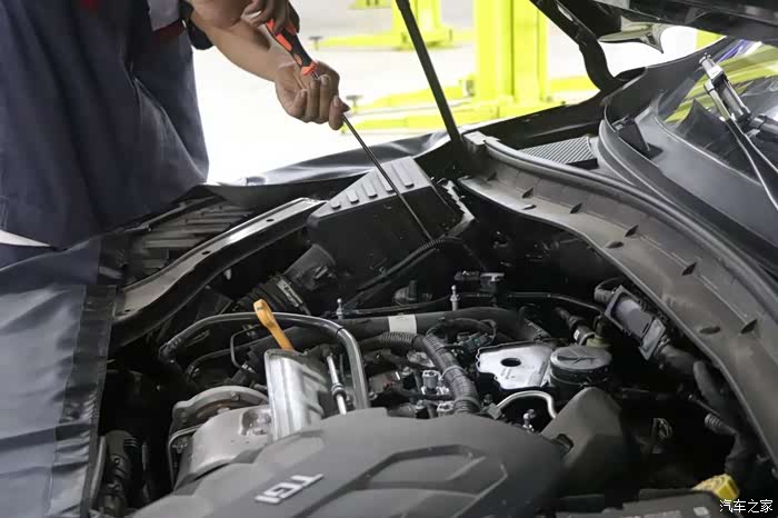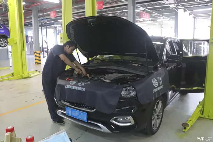 负责保养的工作人员在进行车辆保养前的预检,按照严格的保养施工流程来工作,很放心