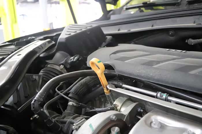 机油尺比较醒目,保养前会拔出来看看车内的机油的状况和位置,保养结束也会看看机油加注量是否达到合适的位置了