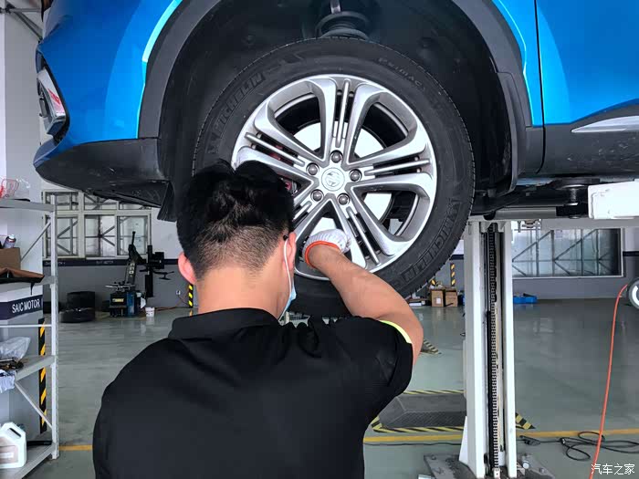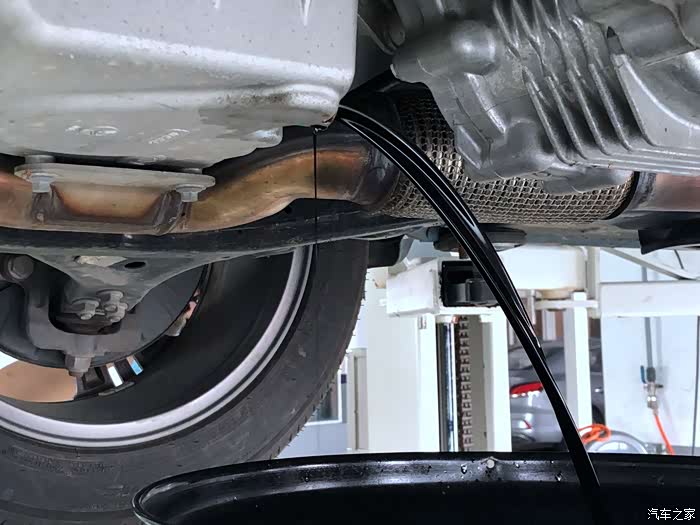 工作日的关系,店里一辆车都没,不用排队上了楼直接开始做保养。售后技师换了新人,做事桑活清爽,速度也很快。从上架子到下来不到半小时就全部搞定了。