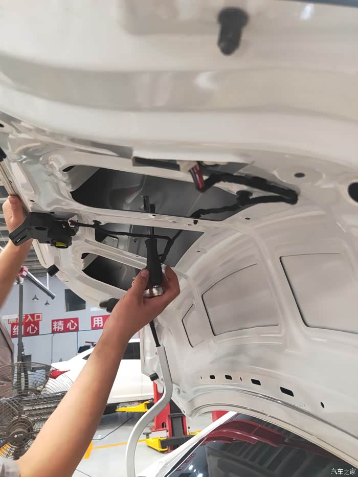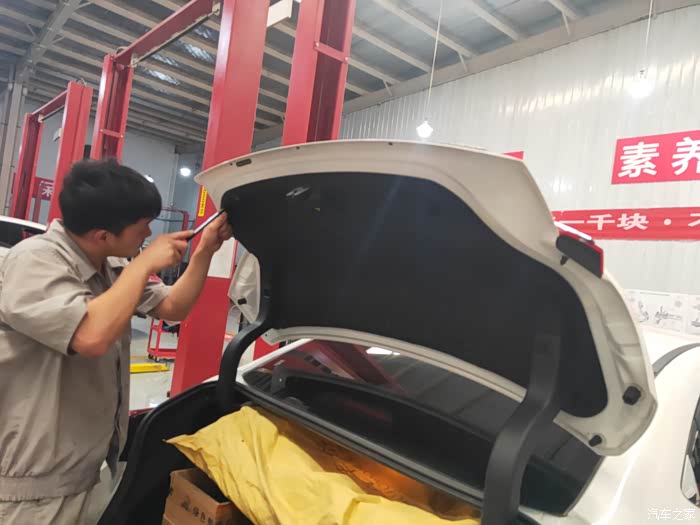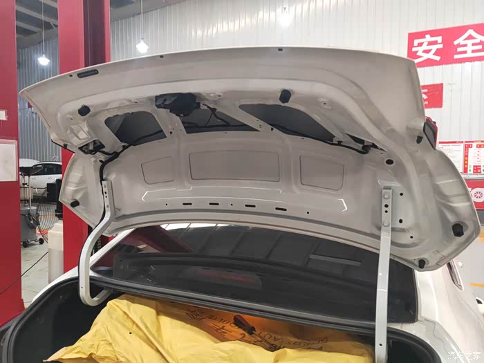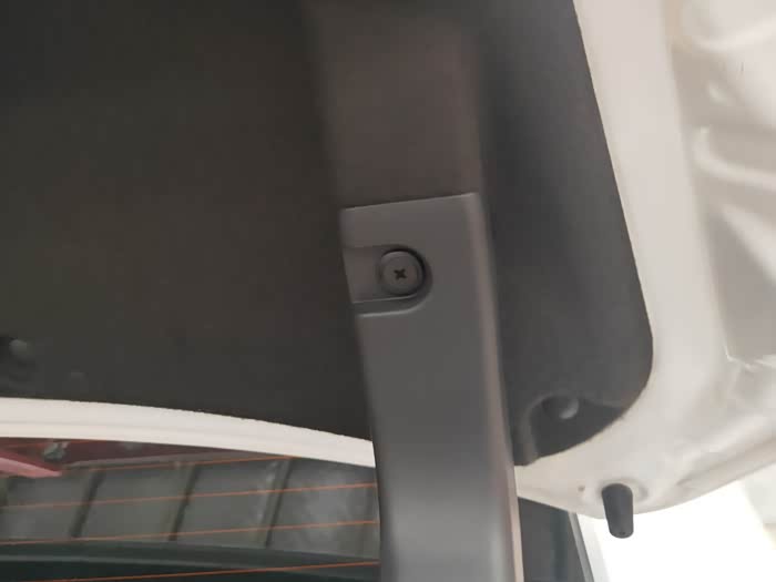 更换后备箱装饰亮条需要将后备箱这个隔音棉去掉,然后才能去掉后备箱开关,更换新的装饰亮条。