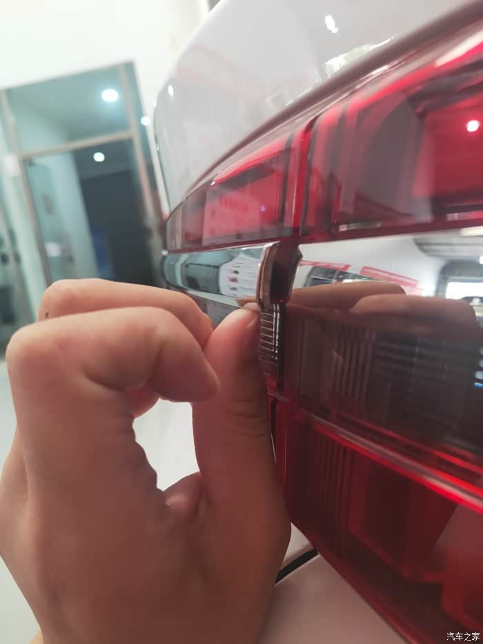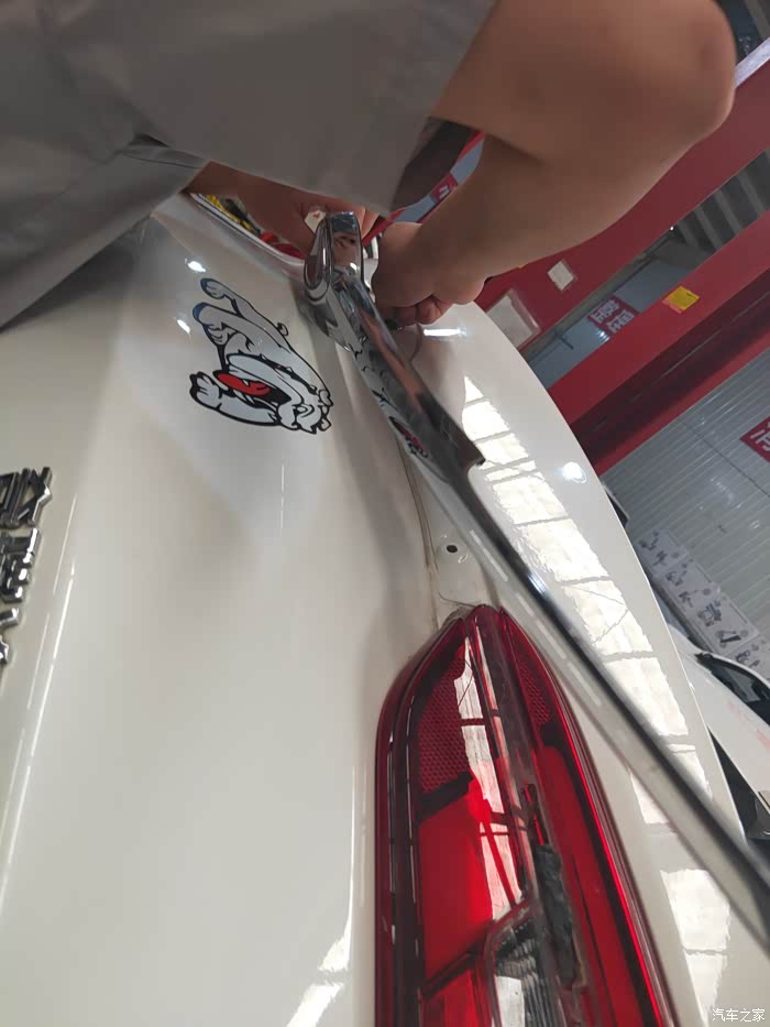在有一次擦拭车辆的时候,发现后面这条贯穿式的镀铬条翘起了。