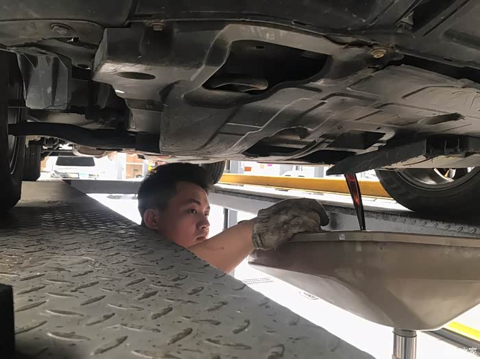 等了五六分钟终于排放完机油了,特意让师傅把机油排放的干净点