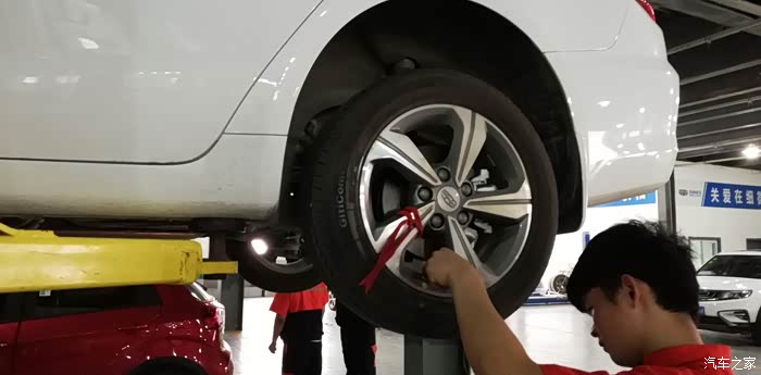 对轮胎压力进行检测维护,售后师傅非常用心。