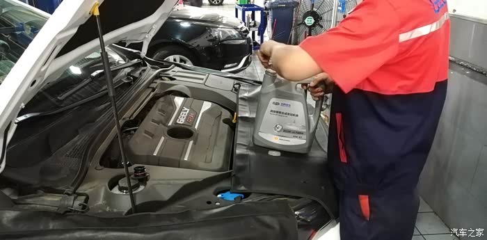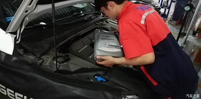 售后师傅倒的非常认真,一滴油也没有洒出来。