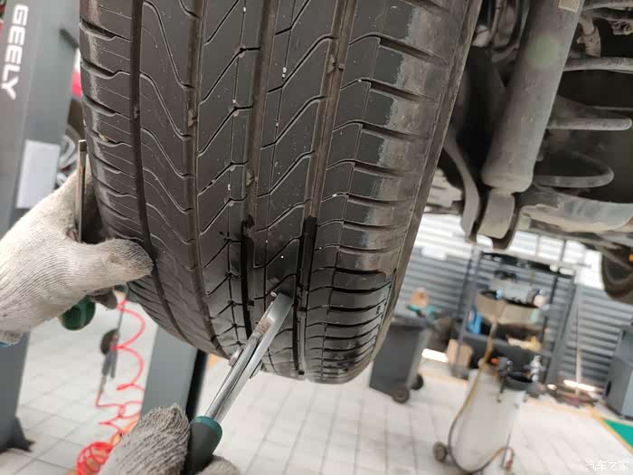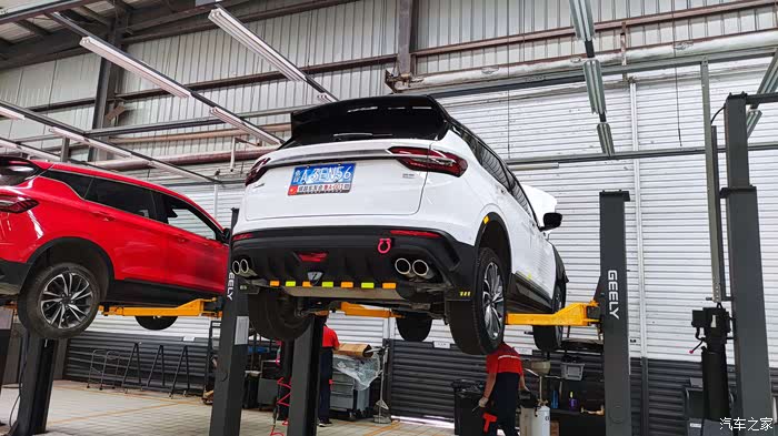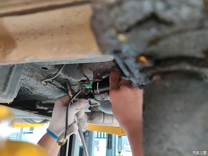 装上去,另外的一个师傅在检查底盘上的零部件有没有松动的地方,顺手紧一把!