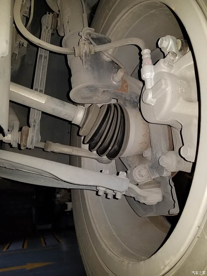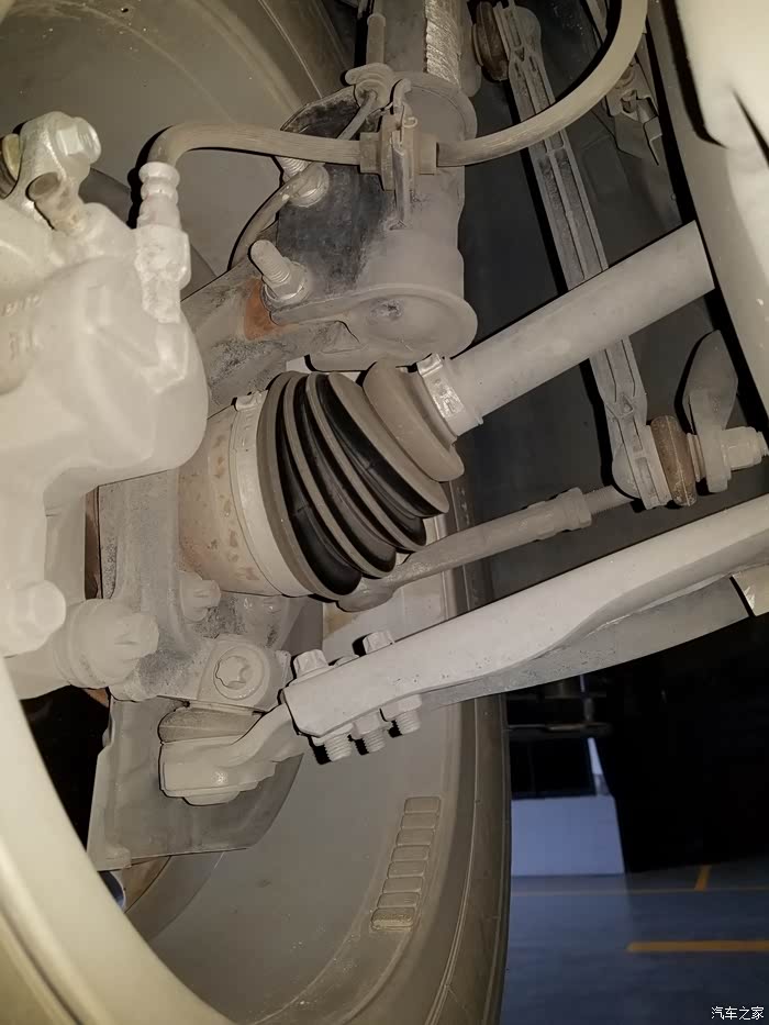 左前轮传动轴、球头、支撑臂、横拉杆、连杆都没问题,同样有些地方已经生锈。