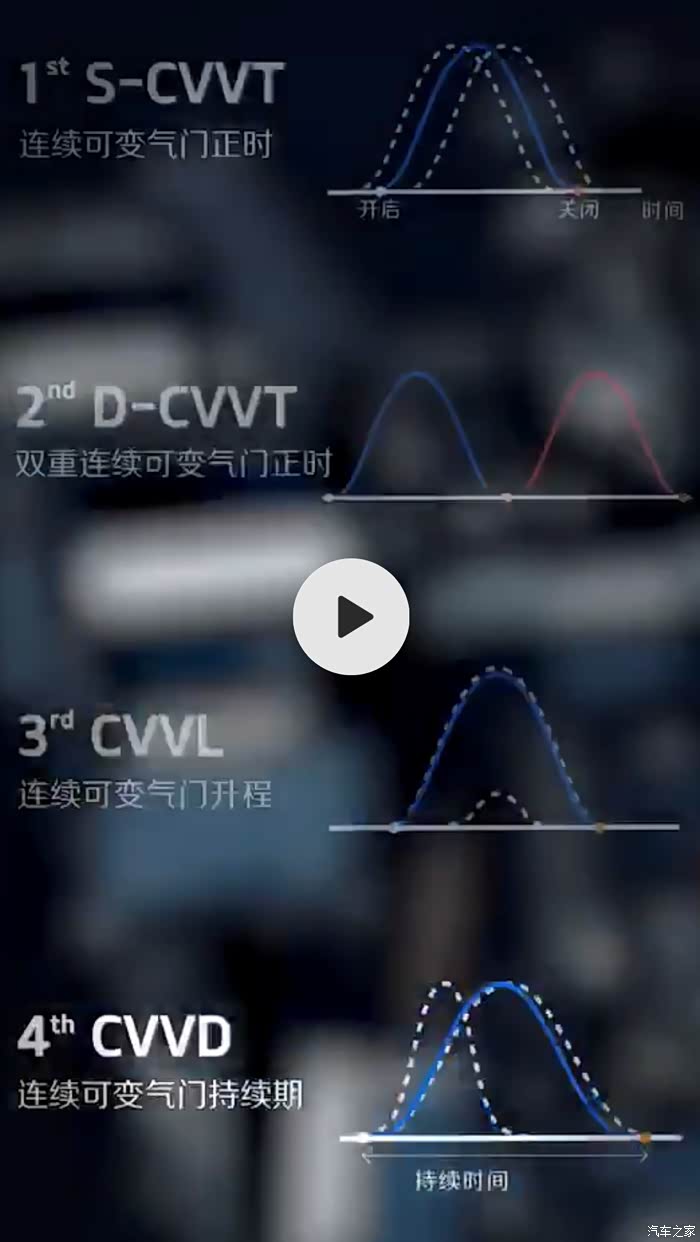 那么什么是“可持续变化期”?我拿火柴、打火机、喷火器举个例子,CVVT就是火柴,CVVL就是打火机,喷火器就是CVVD。火柴只能一根或者多根滑燃,打火机可以点燃后调节火焰大小,喷火器在点燃后既可以无限控制火焰大小还可以控制火焰持续时间和关闭时间做到“当你想打开的时候就可以打开,当你想关闭的时候就可以关闭”。
