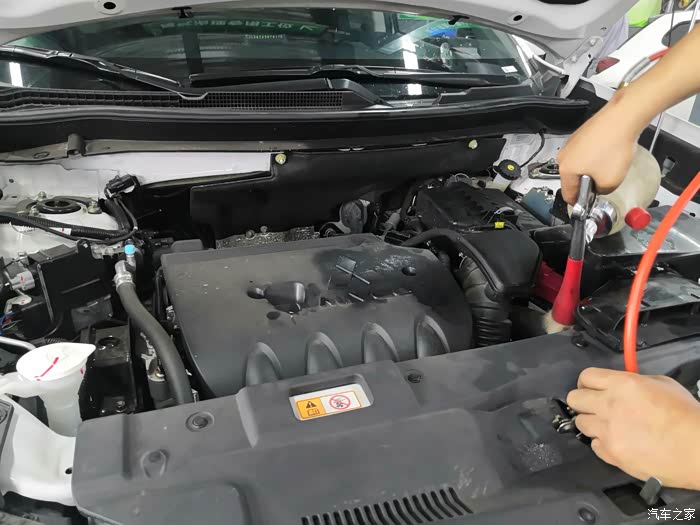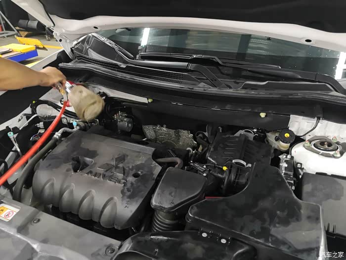 把发动机舱进行清洁。