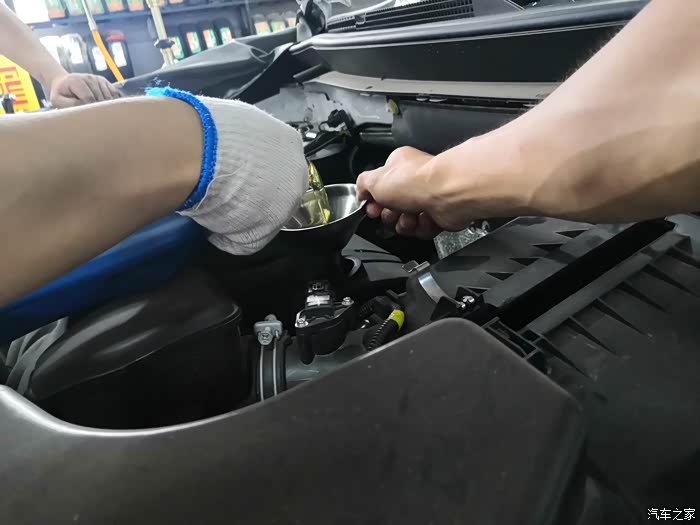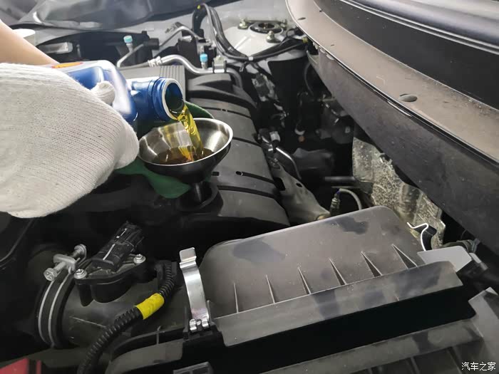 把新机油倒入发动机。