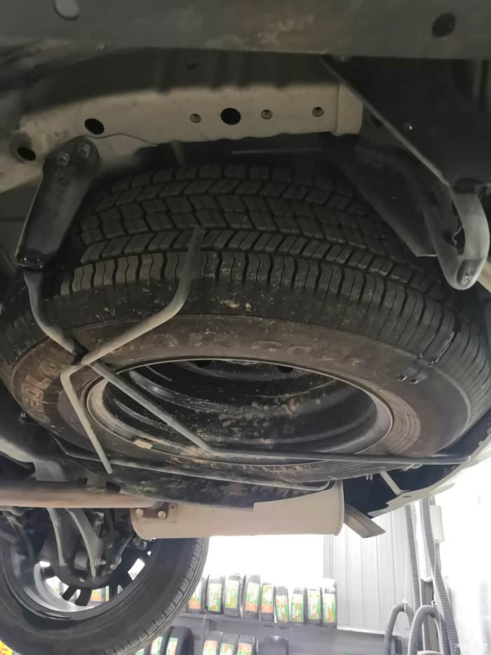 备胎悬挂在底盘下,隐蔽性挺高