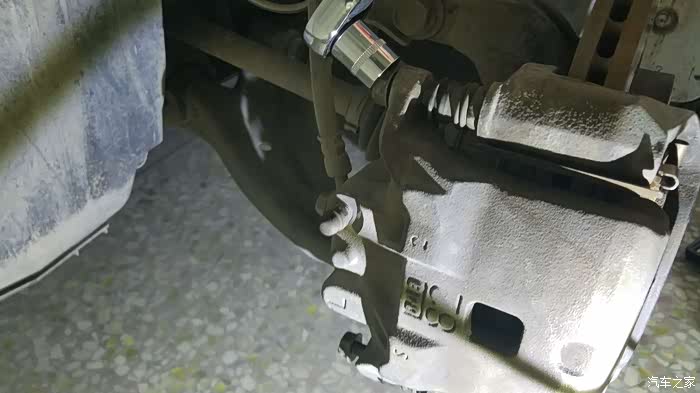 刹车卡钳(活塞)因为比较重 避免扯坏刹车油管。要用东西挂起来 不能让它自己吊在一边。