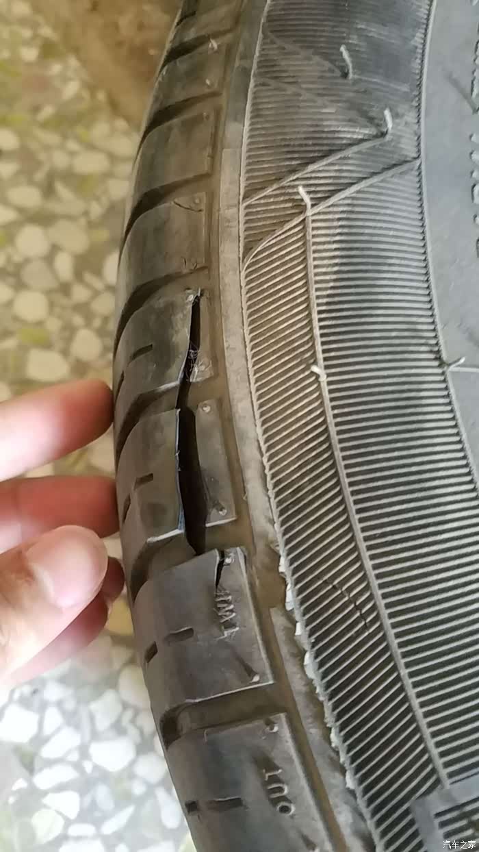 这是就是今天的花絮NG....卸左前轮胎的时候,发现靠发动机这面 也就是看不到的这面,发现了一条大裂痕 不知道什么时候压到什么刀片割的吧....心累............不拆不知道有一道这样的东西。