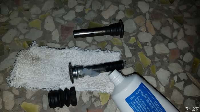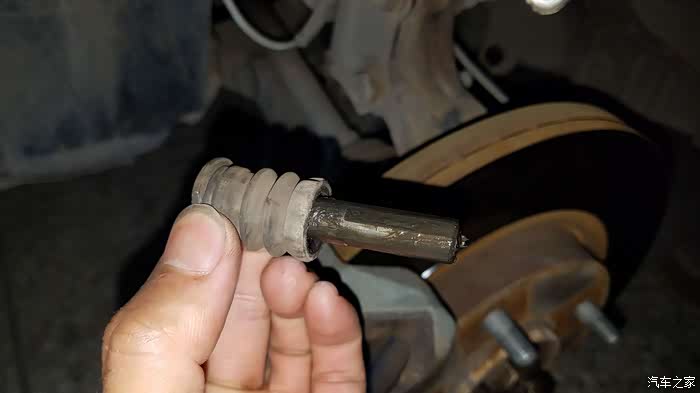 检查一下导向销的防尘胶套如果破烂了需要换掉,不然上润滑脂也耐不了多久。