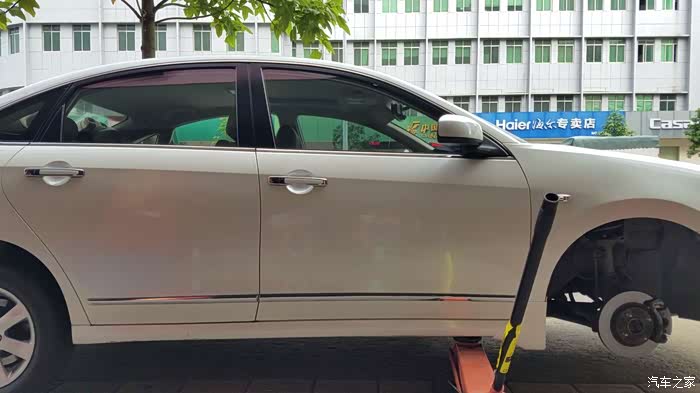 第一句话 还是安全第一,没有经验知识动手能力的不建议自己动手(制动系统不能拿来开玩笑的),建议去汽修店。--------因为刹车发出异响所以动手保养起来了,工具还是凑合不够齐全。而且还是用自带 换备胎的千斤顶操作的。1.卸轮胎之前不要顶起先吧轮胎螺丝轻拧松。之后再用千斤顶撑起。