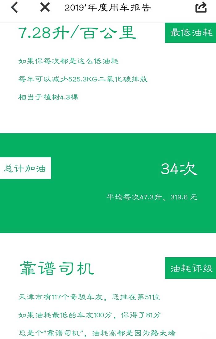 本人加油习惯通常是油灯报警亮,然后就近去加油站加满到第一次跳枪即停止,从上述加油记录可以看出这个过程中加油量通常在52-55之间,这个数和灯亮后离加油站远近有关系,但基本可以确定奇骏的邮箱应该接近60-65L。