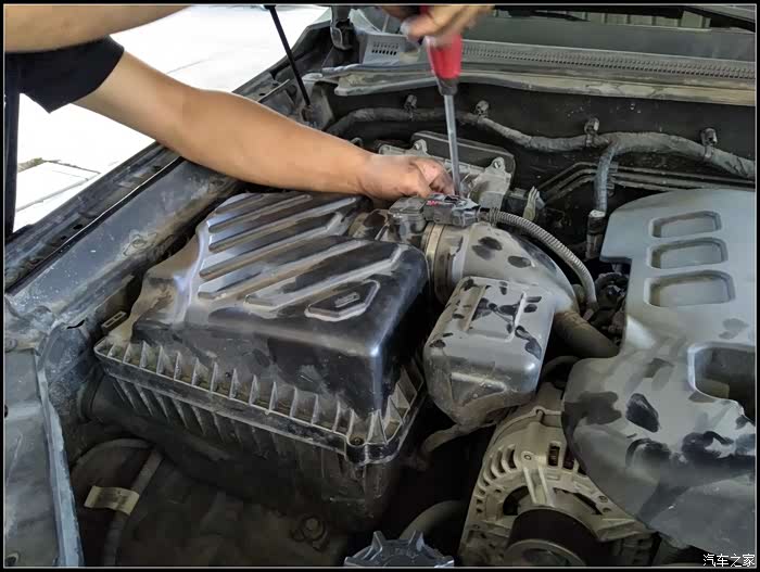 小师傅,开始保养了,第一件事情是把空气滤芯吹干净。