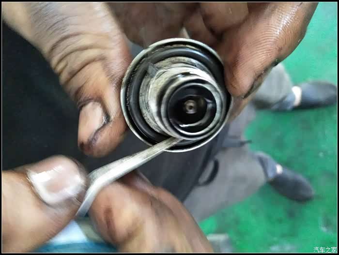 机油滤清和放油螺丝安装好后,就是打黄油了,我的车大概是8万公里时换的十字节,现在12万多,该打黄油了。