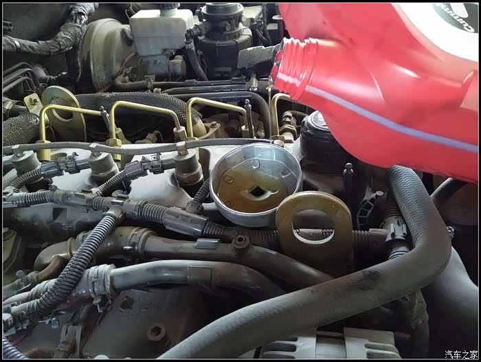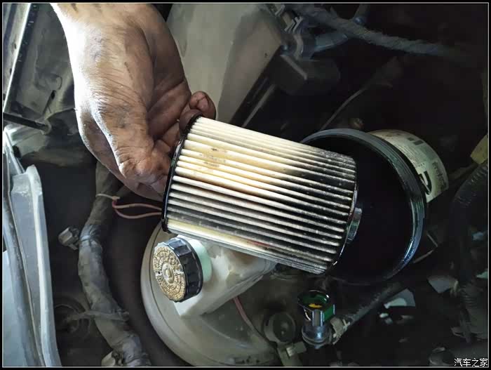 新柴油滤芯换后,排气,再清洗下滤清器外壳的柴油,OK。